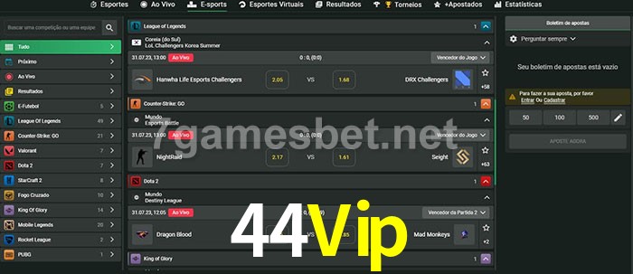 A aposta 44Vip oferece aos jogadores a experiência mais conveniente de apostas em eSports!